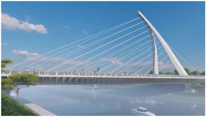 江北新区镇南河路跨七里河桥梁工程起于镇南河路与火药洲路交叉口,止于天一大街与滨江大道交叉口。道路全长约670米,桥宽36米,桥梁总长134.6米。