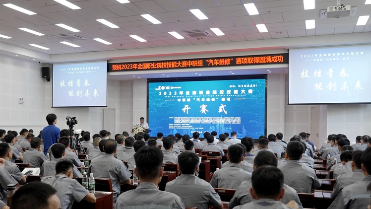2023年9月18日下午,2023年全国职业院校技能大赛中职组“汽车维修”赛项开赛式在南京交通中等专业学校举行。来自全国各地的95支参赛队伍的领队、参赛选手和赛区、赛项执委会的领导专家以及协办单位工作人员、志愿者等300余人参加了开赛式。