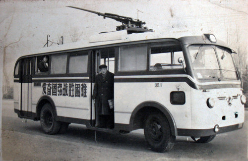 60年代南京公交无轨电车(车门站立着的是南京公交创办者吴琢之)