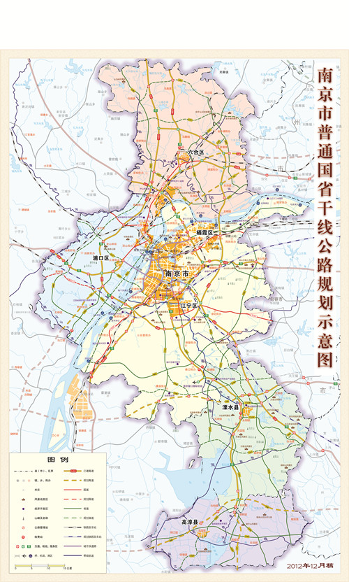 先后完成了江北大道、高望、浦泗、老宁杭公路、312国道(南京段)、123省道、205国道(南京段)、疏港公路以及243省道(南京段)、江南和江北沿江高等级公路等重要干线公路改扩建或新建工程。宁高新通道、104国道江南段、127省道宁滁快速通道、353省道扬滁公路、246省道南段、360省道东段等国省干线项目全面建成,104国道北段、340省道、338省道、356省道等项目加快建设,到十二五末,干线公路总规模达到了1800多公里,实现了“干线公路连街镇”目标。
