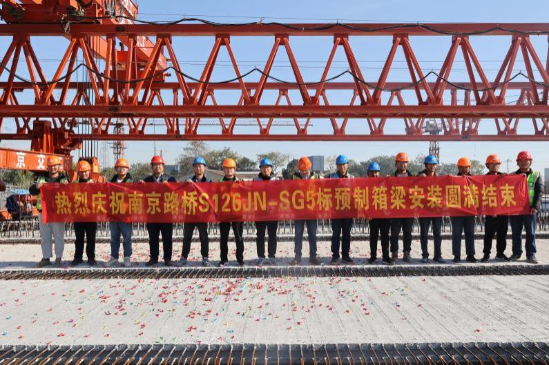 126省道(大周路至苏皖省界段)改扩建工程牛首山主线桥预制箱梁安装圆满结束