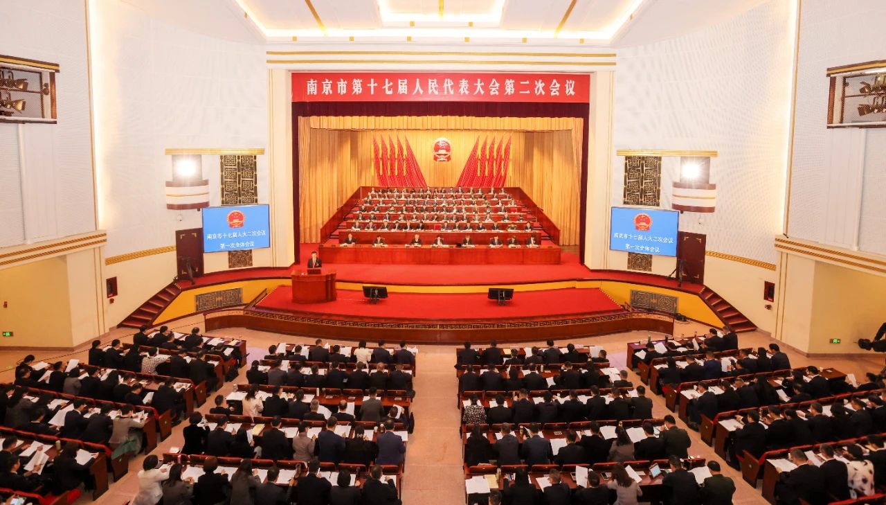 1月16日上午,南京市第十七届人民代表大会第二次会议在南京人民大会堂开幕。市长陈之常代表市人民政府向大会报告工作。