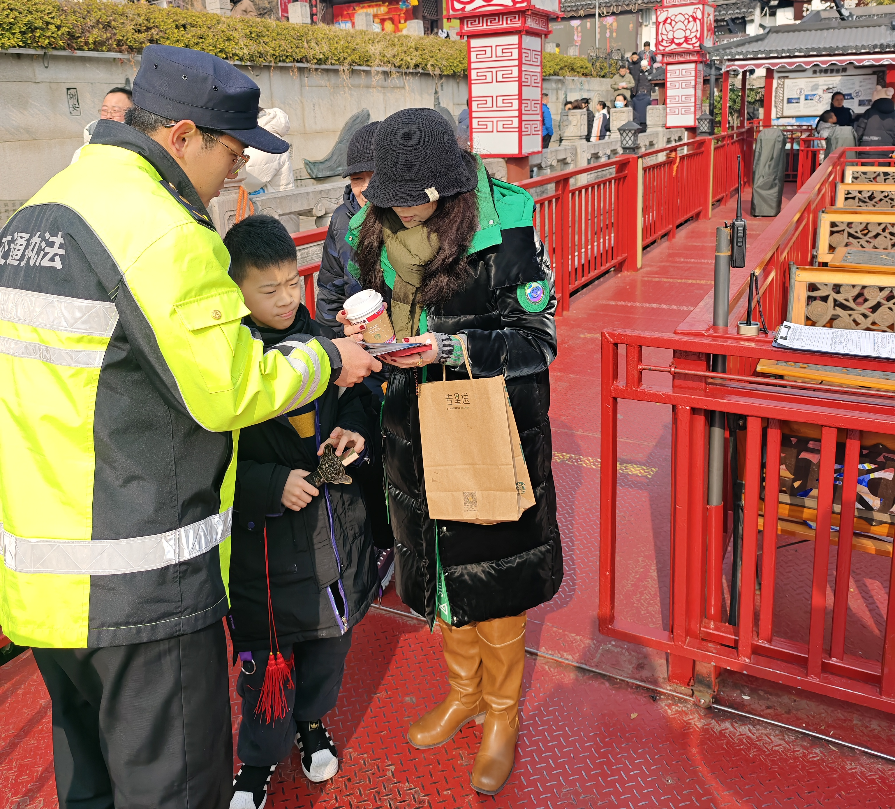 “陆”地值守。春节及元宵期间,支队执法人员每天在夫子庙泮池码头驻点保障,重点检查航行靠泊管理、船舶技术状况、船员履职能力、应急救援保障等方面,督促船舶严格遵守乘客定额规定,严禁超载航行。现场指导协助企业做好乘客上下船秩序维护工作,防止出现人员踩踏、落水等情况,向游客科普防溺水安全知识。同时要求公司针对游船安全管理的最新要求,持续落实安全生产主体责任,加强船舶、船员管理,特别是加强锂电池等新能源船舶的安全监管,确保船舶安全载运。