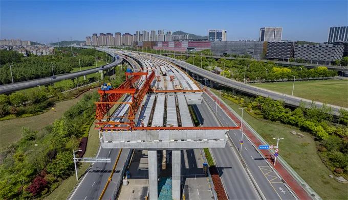 312国道宁镇界至七乡河段建设工程(312国道东延)项目施工又有新进展。4月18日,随着第44跨箱梁的顺利架设,标志着箱梁架设进入了快车道!