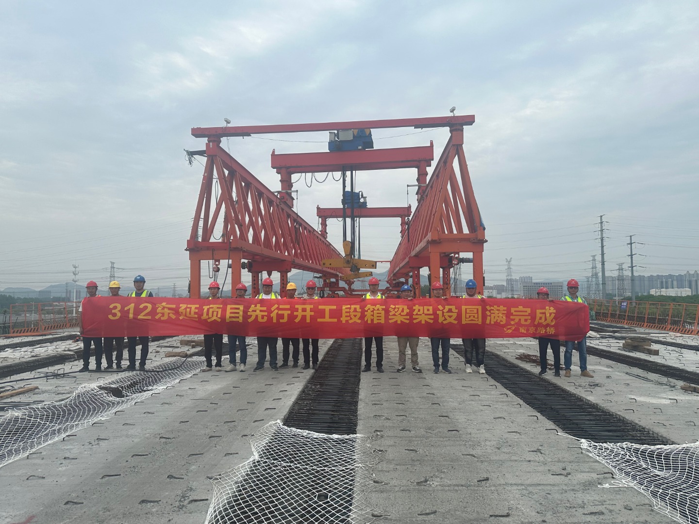 4月25日下午,随着312国道宁镇界至七乡河段建设工程(312国道东延项目)先行开工段最后一片预制箱梁精准落位,标志着312国道东延项目先行开工段预制箱梁架设任务圆满完成。