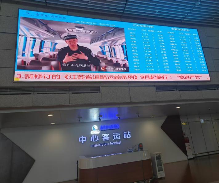 新修订的《江苏省道路运输条例》(以下称条例)经江苏省十四届人大常委会第九次会议审议全票通过,于2024年9月1日起施行。为让社会各界广泛了解《条例》、全面执行《条例》,确保条例顺利实施,我市在正式实施日前后,在客运枢纽南京站、南京南站、禄口机场、绕城公路等场所,利用电子显示屏投放宣传标语共计14处,营造了浓厚氛围。
