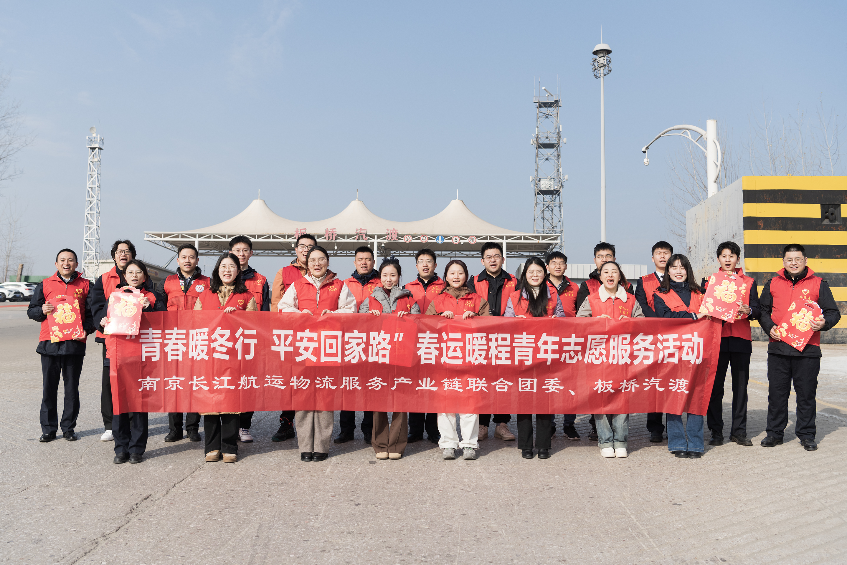 1月14日,2025年春运正式拉开帷幕。为保障春运水上交通安全和乘渡群众出行平安,引导广大青年积极参与志愿服务活动,凝聚青春力量,维护安全出行,汽渡中心携手南京长江航运物流服务产业链联合团委,共同举办了“青春暖冬行 平安回家路”春运暖程志愿服务活动。下关滨江商务区管委会、南京海事局、长江南京通信管理局等9家单位的青年志愿者们参加了此次活动。