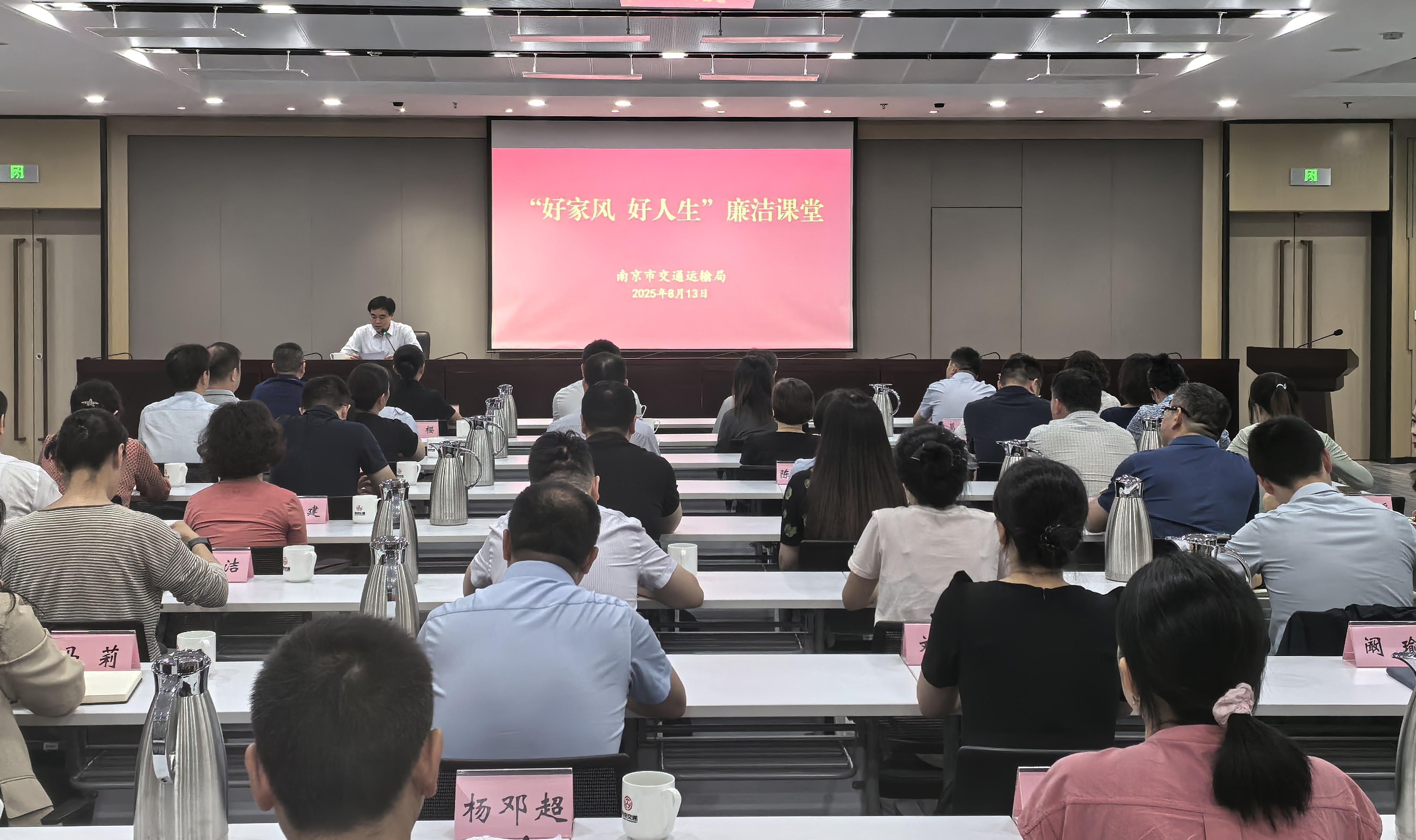 为深入学习贯彻习近平总书记关于家庭家教家风建设重要讲话精神,按照市纪委监委的统一部署,8月13日,南京市交通运输局开展“好家风 好人生”廉洁课堂活动,局领导班子代表及局机关处室主要负责同志、新提拔处级干部、部分关键岗位干部和干部家属参加。